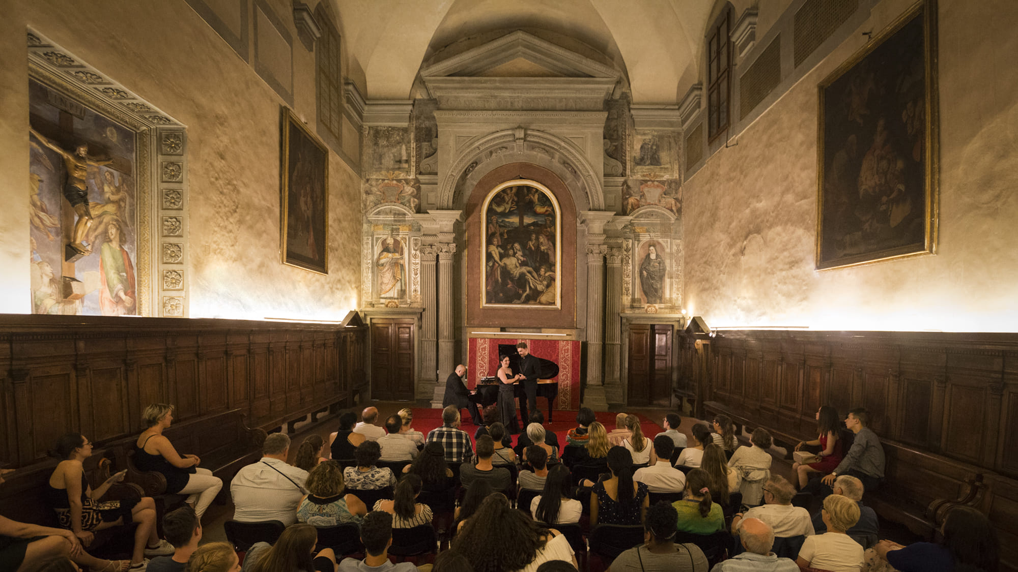 Listen to brilliant opera pieces by famous Italian composers, performed live in concert. Experience the extraordinary atmosphere and acoustics of the Santa Monaca Church, built in 1400 in Florence.